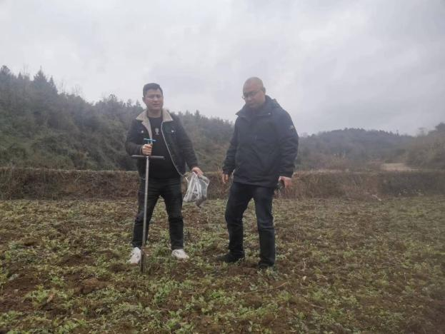 一、项目介绍本项目在重庆大学金凯教授前期研究基础上,联合重庆市烟草公司酉阳分公司,开展多功能微生物与肥料联合施用对位防控烟草主要病虫害的技术示范应用。关键措施包括:1、有机肥中添加多种功能微生物成为生物有机肥作为底肥(委托丰泽园肥业有限公司生产);2、定根水混合多功能微生物菌剂使用;3、叶面肥中添加微生物菌剂喷施。通过以上几个关键措施达到有效防控烟草主要病虫害并实现烟叶生产的提质增效的目的。 二、前期准备 重庆大学金教授和丰泽园肥业有限公司人员一行前往酉阳龚滩确定示范地块并取土样,以此为依据对照使用生物有机肥前后土壤的变化。(2023.2.23)
