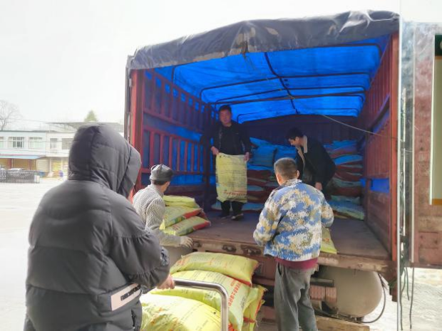 丰泽园公司安排车辆将烟草项目第一批物资(生物有机肥和微生物菌剂)配送至各农户手中,技术部成员跟随确保物资种类数量准确无误送达农户手中,并与农户沟通交流生物有机肥和微生物菌剂的使用方法和注意事项。(2023.3.18)