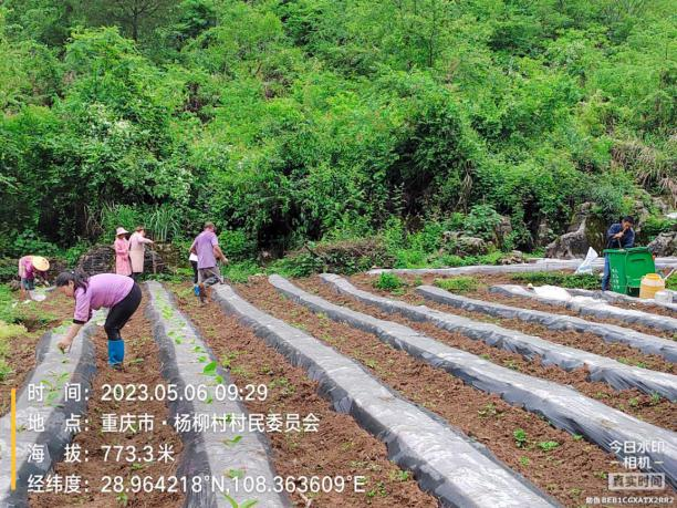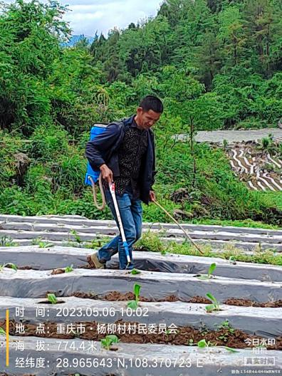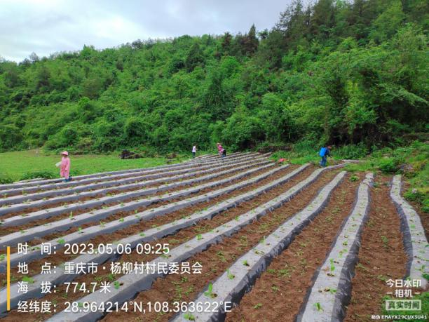 移栽时按照烟草种植标准间距在薄膜上打孔定距,后期使用移栽机器种植烟苗,完成后使用水肥器或提壶灌淋定根水。(2023.5.6)